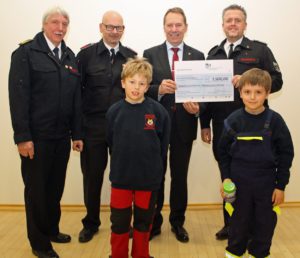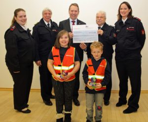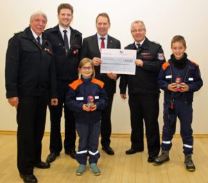 Über einen Spendenscheck in Höhe von je 1.500€ konnten sich am 18. Dezember die Kinderfeuerwehren der Kommunen Bergneustadt, Engelskirchen, Marienheide, Radvormwald und Reichshof freuen. Landrat Jochen Hagt würdigte hiermit im Beisein einer Delegation der Feuerwehren das Engagement der ehrenamtlich Tätigen in der Kinder- und Jugendarbeit.