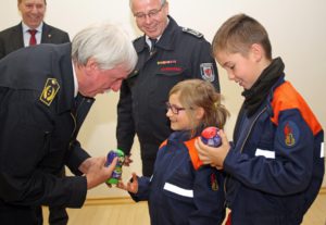 „Mit der weitsichtigen Gründung einer Kinderfeuerwehr tragen Sie in besonderer Weise dazu bei, den Fortbestand der freiwilligen Feuerwehren im Oberbergischen Kreis auch in Zukunft zu sichern. Kinder, die in der Feuerwehr „groß geworden sind“, bilden später auch das Rückgrat in den Löschgruppen in den Städten und Gemeinden unseres Kreises“, sagt Jochen Hagt.